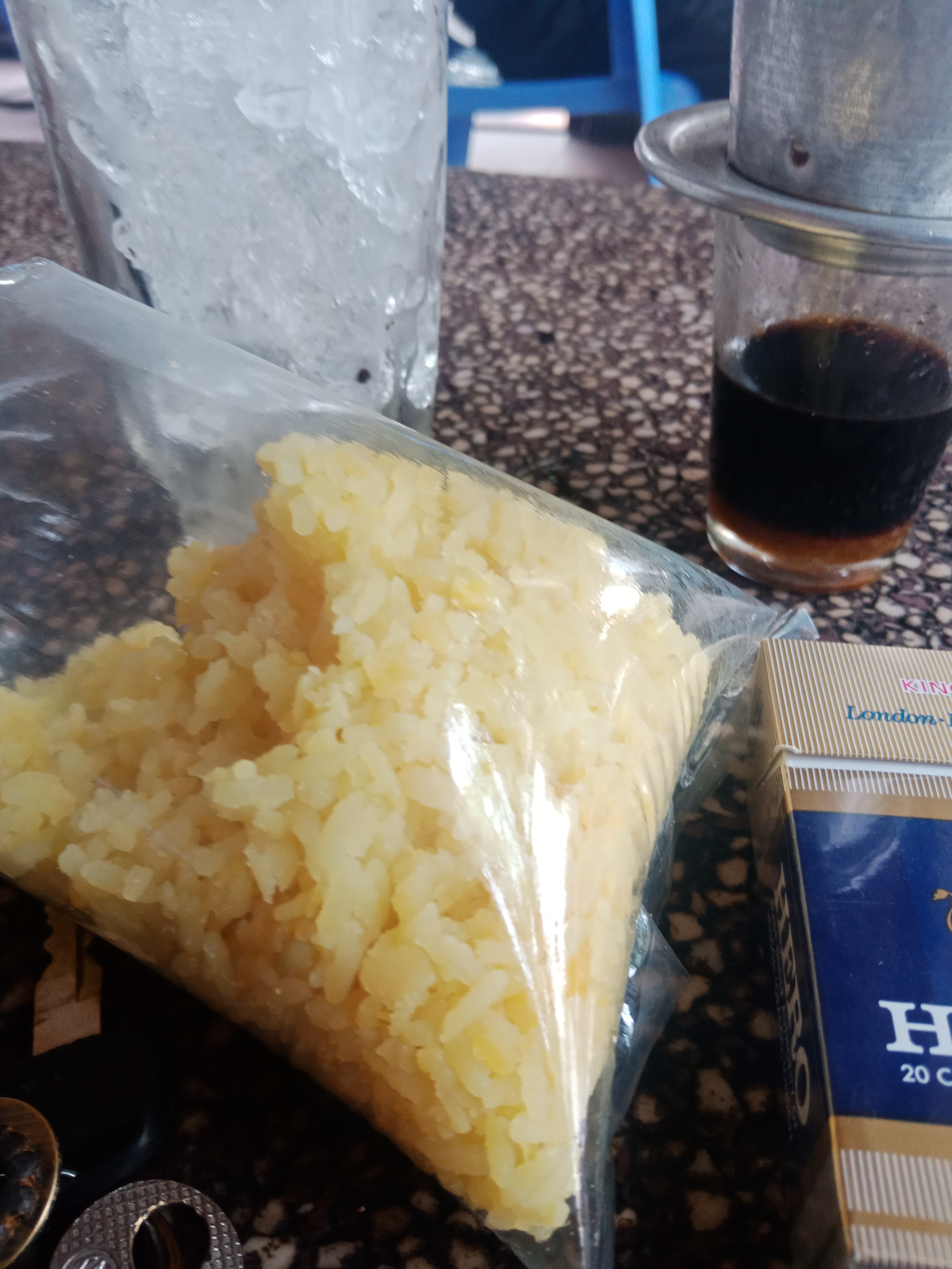 Đây!nắng quá kiếm ly doping tăng cường sức lực nè Anh. Tự nhiên chạy ngang thấy xe xôi mới dọn ra nhìn thấy xôi vò ngay món khoái nên nhảy vô vớt bịch...phần thì khoái ăn vặt phần thì nghĩ xôi có đậu mà ăn đậu thì chiều số nó đậu thoai...bằng không thì tru...tru...tru mỏ há há