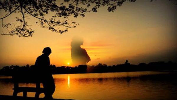 Bóng người hòa lẫn với bóng cây
