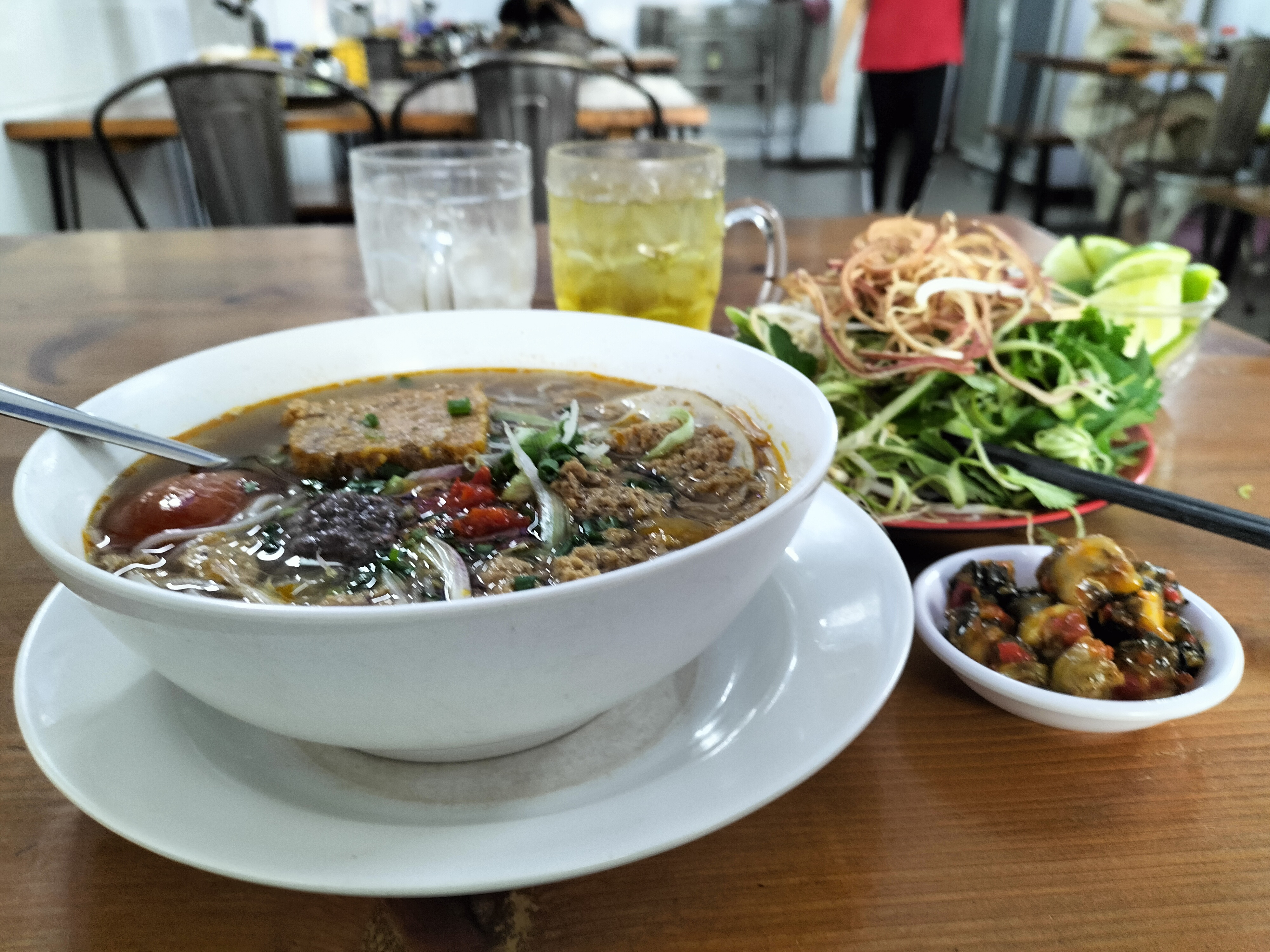 Ăn Bún riêu chả ốc nà.