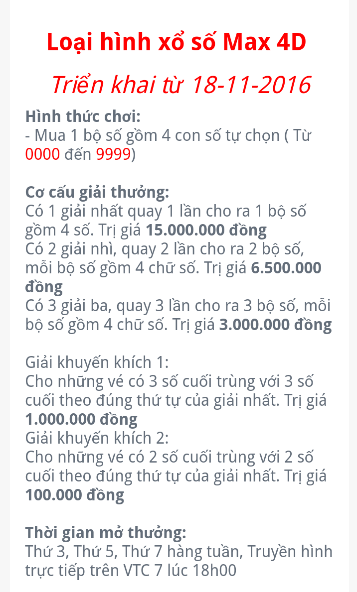 SSorry tyty ,em doc va bt Ngay roi ,nhung cho em phien Ty nha ,lo ngu roi hoi cho chot luon Neu 4so ma ra dung Giai nhut ,nhung ko thu tu co dc ko Ty Em muon hoi Giai nhut,Giai nhi va Giai 3 Con Giai khuyen khich thi em hieu roi Khuya roi em phien tyty ,vi gio nay em moi dc ranh Tay ,vi lam osin ko luong nay met lam Ty oi ,doi may nhoc vo phong di ngu moi Toi Minh Ngu ngon Ty